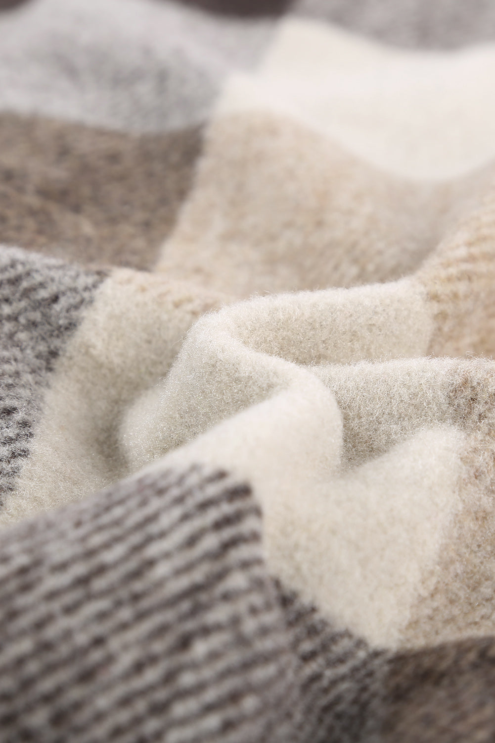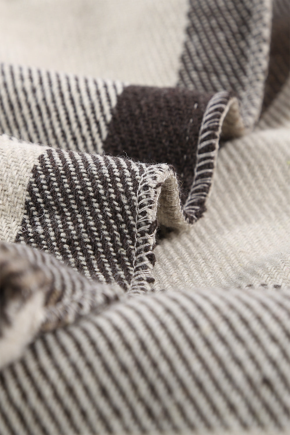 Khaki Plaid Color Block Buttoned Pocketed Shacket