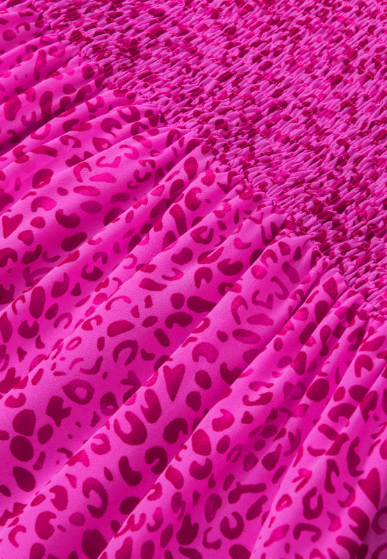 Ruched Leopard Mock Neck Long Sleeve Blouse