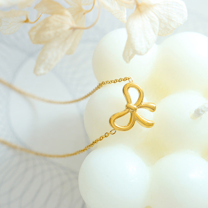 Titanium Steel Bow Pendant Necklace