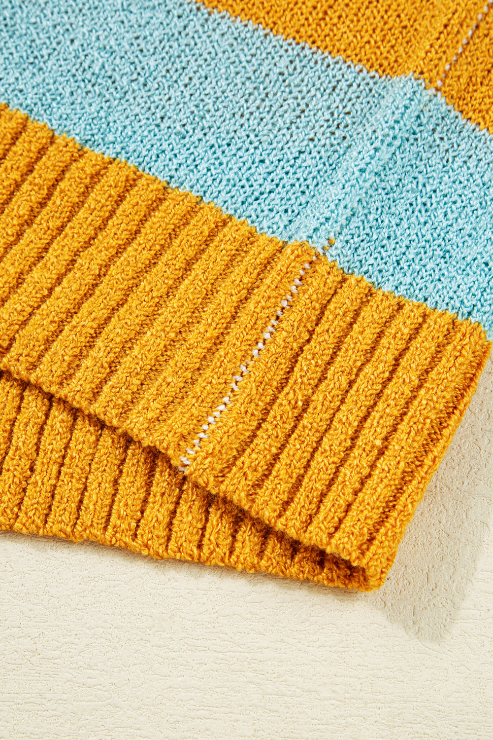 Jurassic Gold Colorblock Striped Pullover Sweater